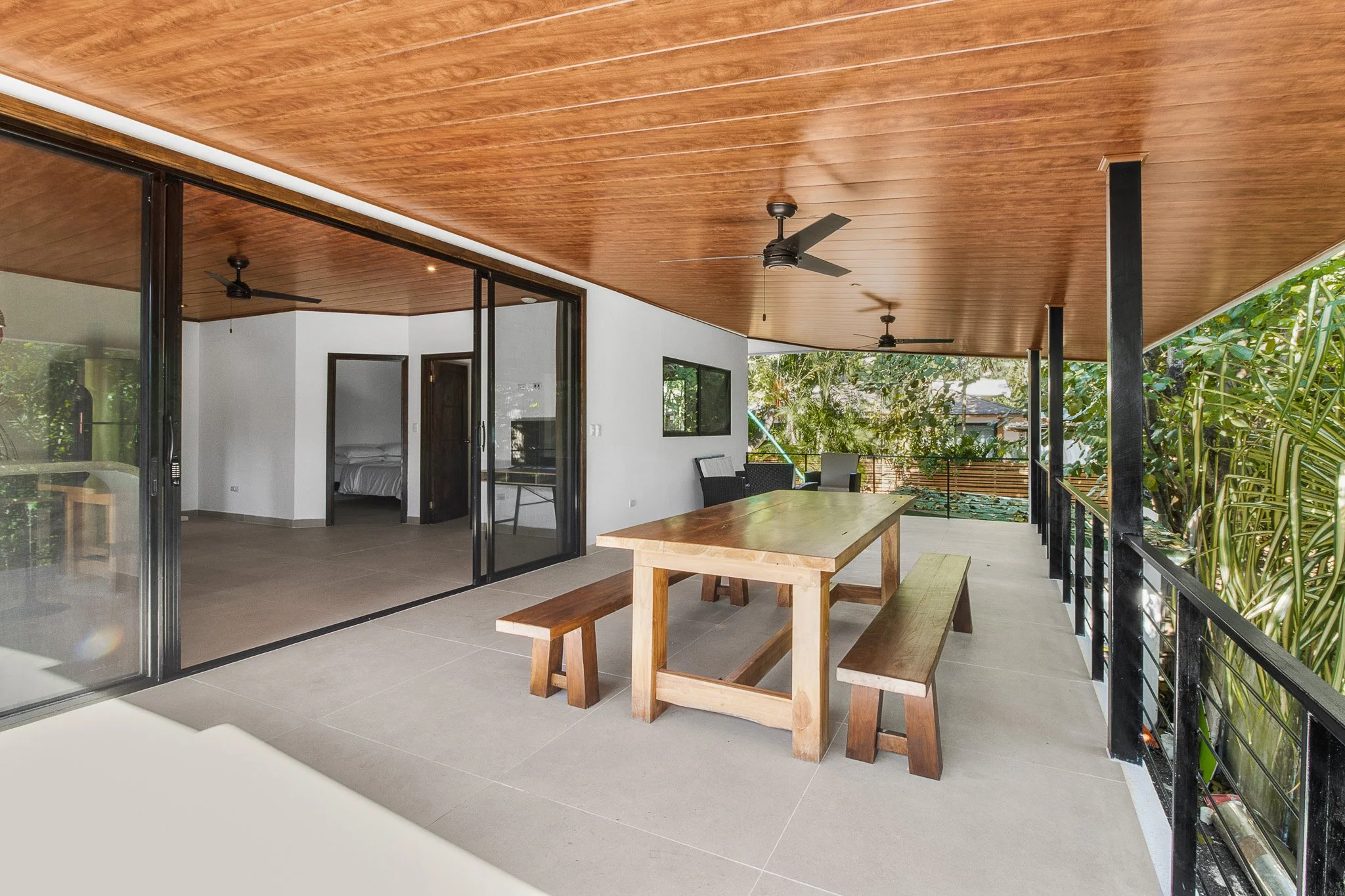 The large private terrace has a large family sized table, sofa, and coffee table. There is a pool area available in case you want to take a dip after a long day in the Costa Rican sun.
